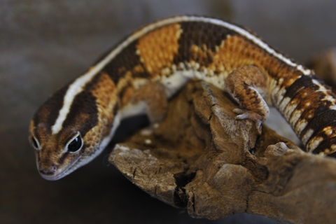 また本種は夜行性傾向がかなり強く、ヒョウモントカゲモドキのように昼間でも積極的に活動する…と言う事はあまりしません。夜電気を消してそっとケージを覗いてみると、周囲の物音や人の動きに慣れた個体は思いの外活動的になります。ニシアフに適した環境を用意し、じっくり付き合って環境に慣らしてやれば次第に活動する姿を見る事ができるでしょう。